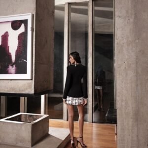 O Blazer Viés Pérolas Celebration Preto é uma peça statement que combina elegância clássica com um toque moderno e sofisticado. Confeccionado em tecido de alfaiataria com estrutura e caimento impecável, o modelo apresenta corte alongado e linhas minimalistas que valorizam a silhueta.
