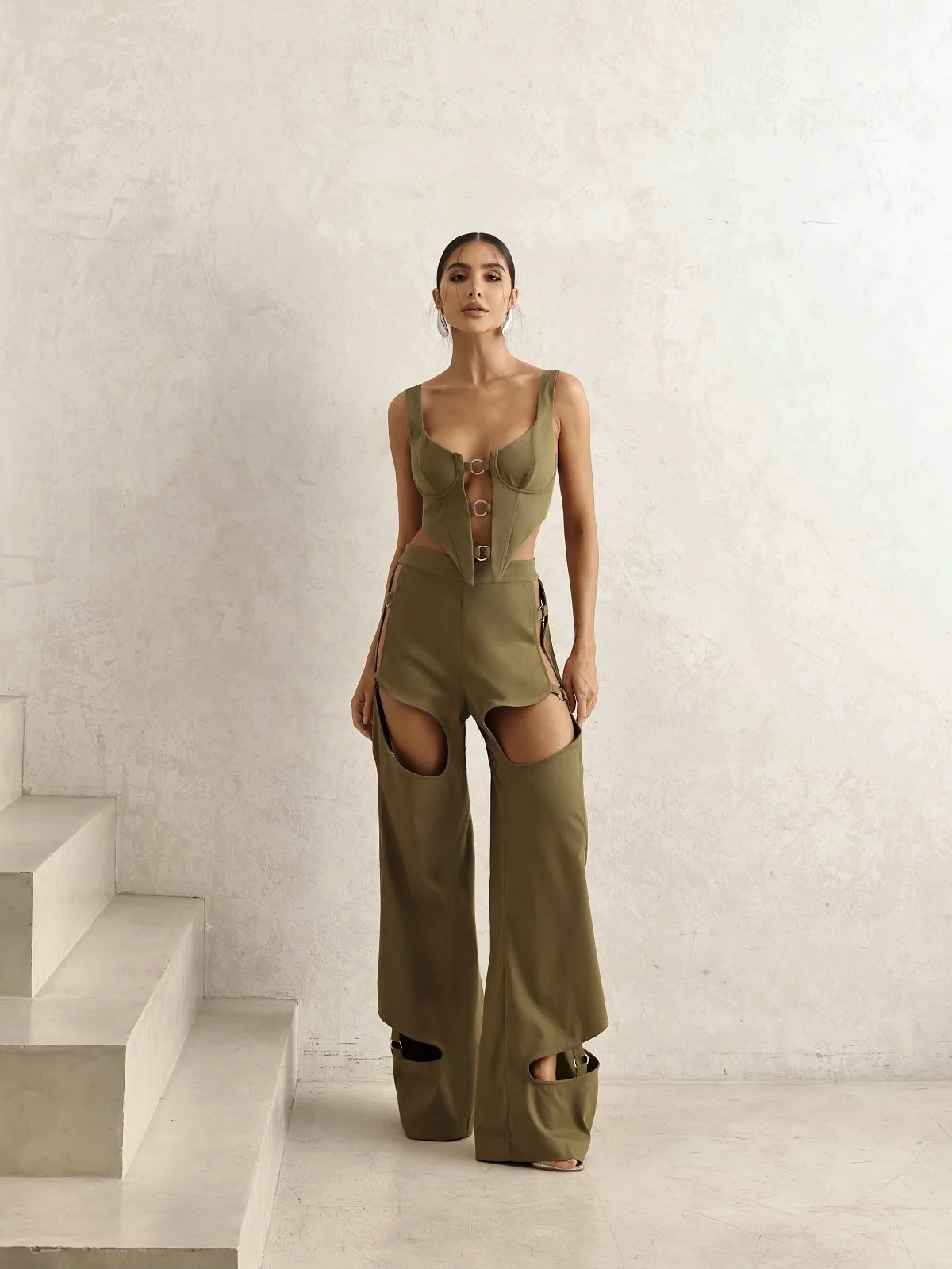 A calça Zaid é uma peça de atitude, feita para quem quer marcar presença com ousadia e originalidade. Com modelagem ampla e caimento leve, ela chama atenção pelos recortes estratégicos que revelam a pele de forma impactante e moderna. Os detalhes de argolas e tiras trazem um toque utilitário e sofisticado, equilibrando sensualidade com estilo urbano. Ideal para compor looks poderosos tanto à noite quanto em produções fashionistas de dia.