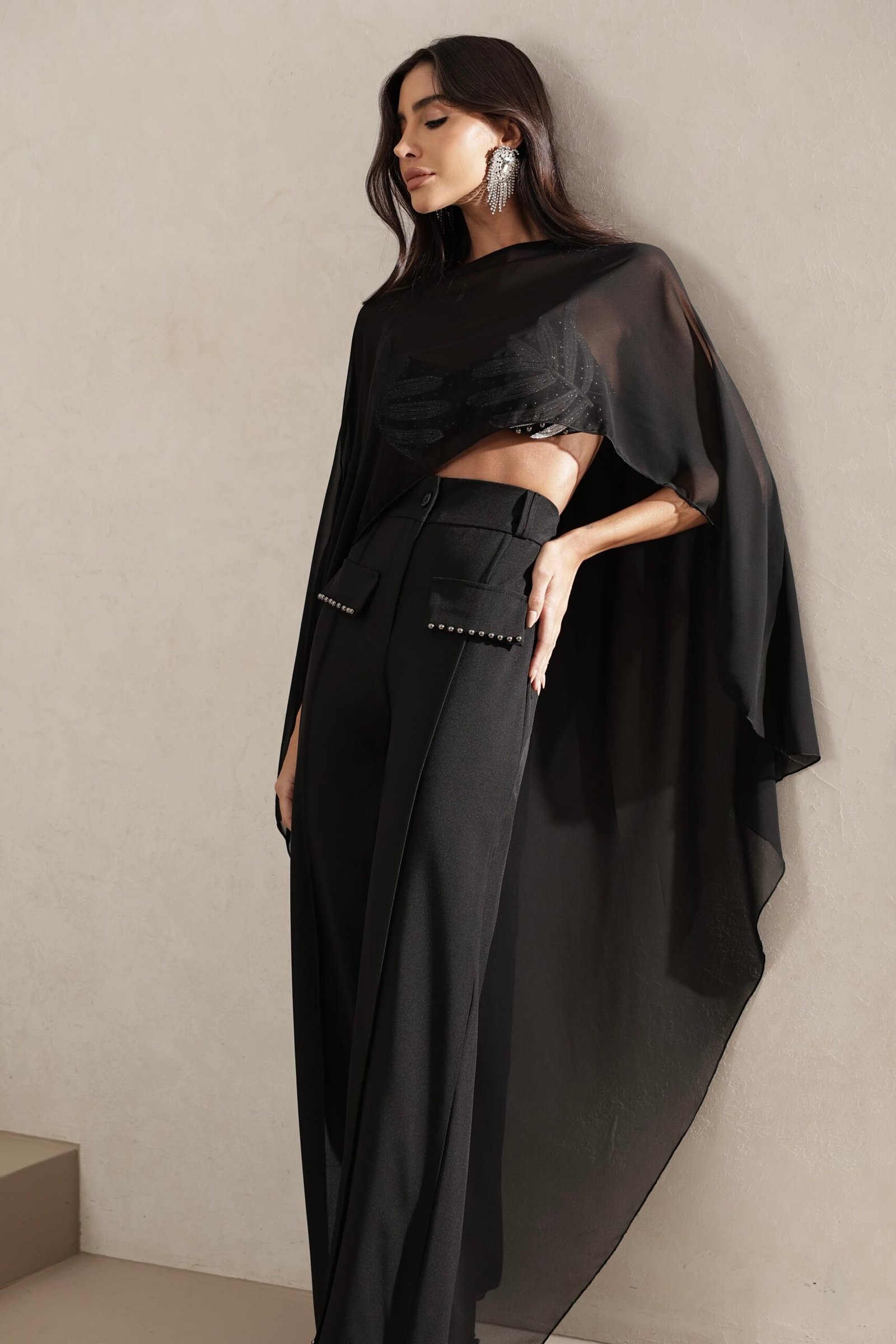 Perfeita para eventos especiais, celebrações noturnas ou produções glamorosas que pedem um toque extra de impacto. Uma peça-chave para transformar o look com leveza, movimento e muito charme.
