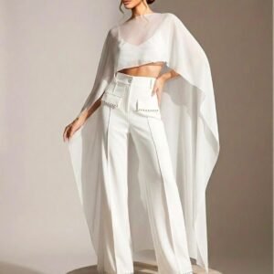 A Capa Chiffon Celebration é a peça perfeita para acrescentar drama, fluidez e sofisticação instantânea ao look. Confeccionada em chiffon leve, ela possui caimento esvoaçante que acompanha os movimentos com suavidade, criando um efeito elegante e imponente. A transparência sutil do tecido adiciona modernidade, deixando a produção mais atual sem perder a delicadeza.