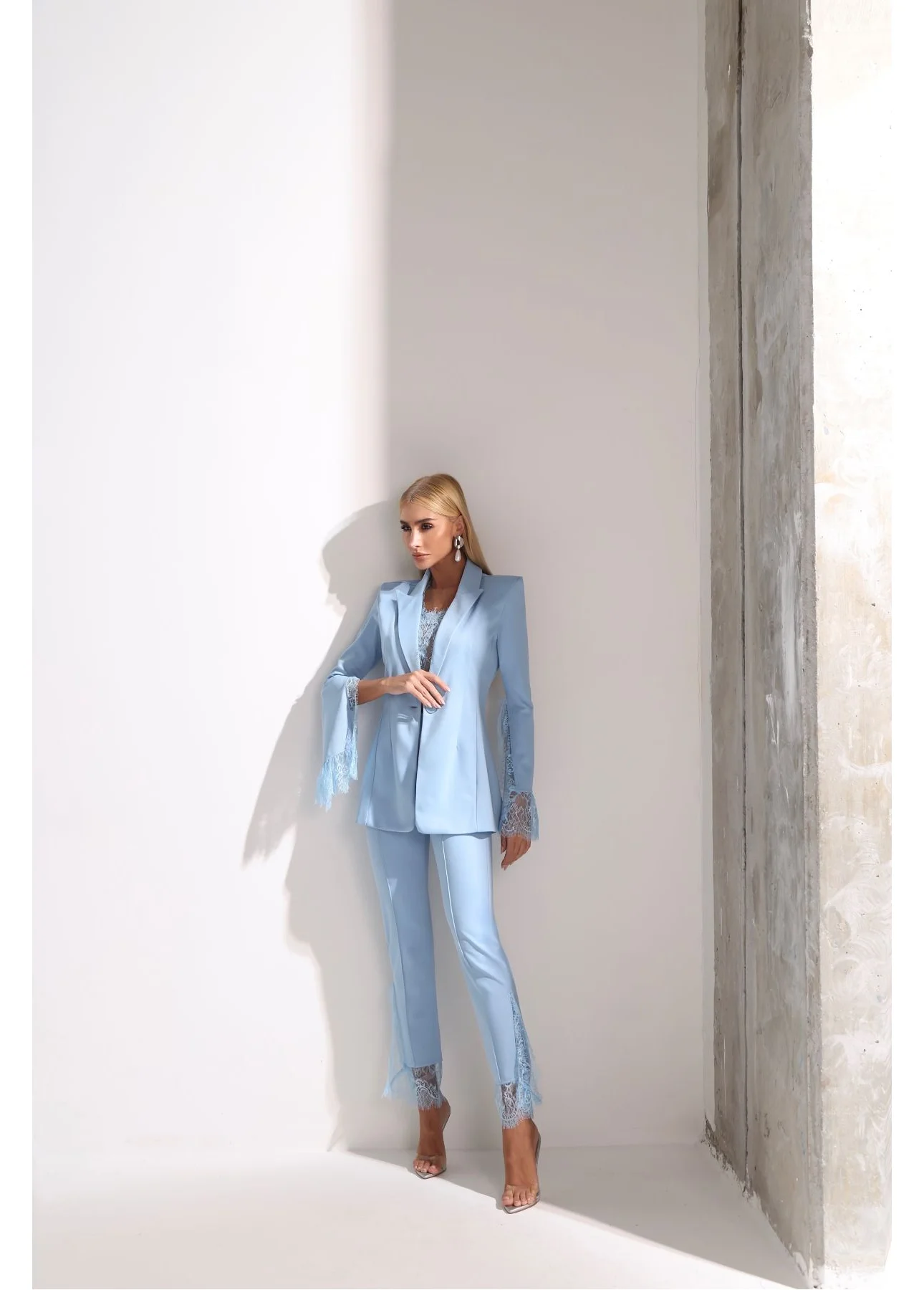 O Conjunto Alys combina sofisticação e delicadeza em uma proposta elegante e moderna. Composto por um blazer estruturado e uma calça skinny de caimento impecável, ambos adornados com detalhes sutis em renda que adicionam feminilidade e charme à composição. O resultado é um look refinado, contemporâneo e cheio de personalidade, ideal para mulheres que valorizam elegância com um toque diferenciado. Para uma produção ainda mais elegante, combine com scarpin ou sandálias de salto fino e acessórios delicados. Já para um visual moderno e fashionista, aposte em botas ou salto bloco e finalize com uma clutch estruturada.