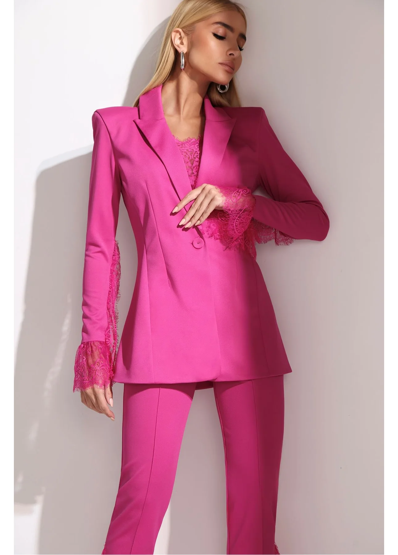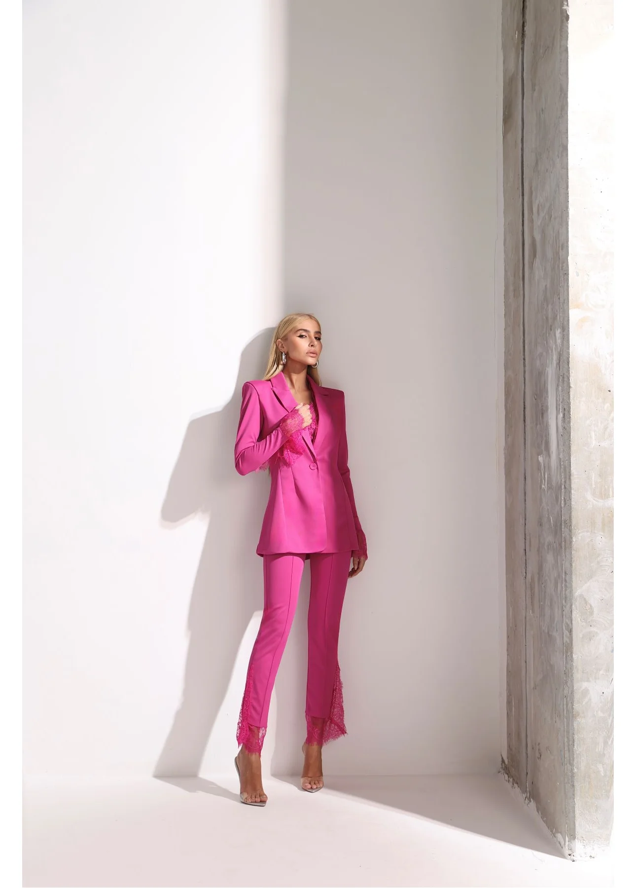 O Conjunto Alys combina sofisticação e delicadeza em uma proposta elegante e moderna. Composto por um blazer estruturado e uma calça skinny de caimento impecável, ambos adornados com detalhes sutis em renda que adicionam feminilidade e charme à composição. O resultado é um look refinado, contemporâneo e cheio de personalidade, ideal para mulheres que valorizam elegância com um toque diferenciado. Para uma produção ainda mais elegante, combine com scarpin ou sandálias de salto fino e acessórios delicados. Já para um visual moderno e fashionista, aposte em botas ou salto bloco e finalize com uma clutch estruturada.