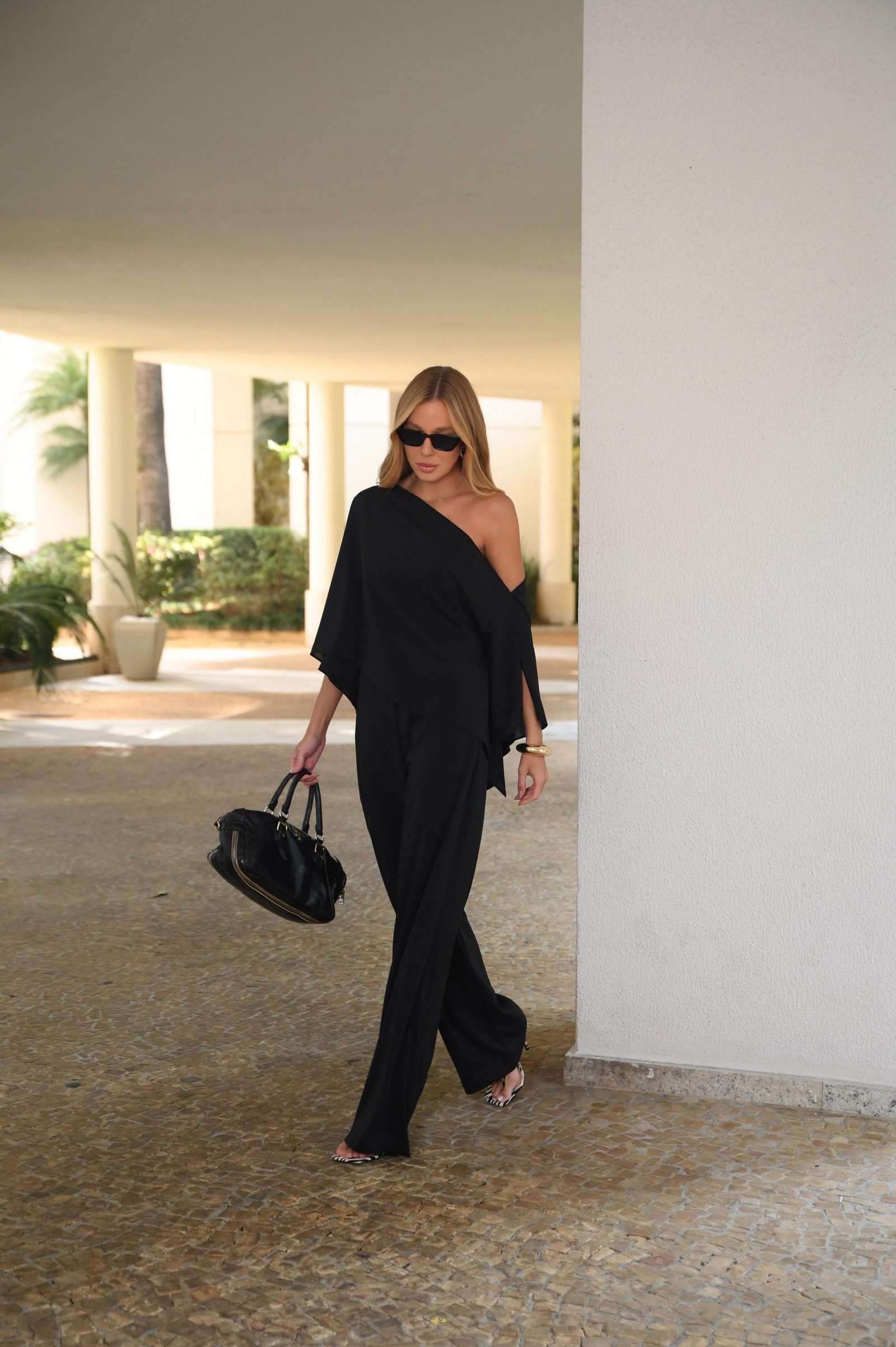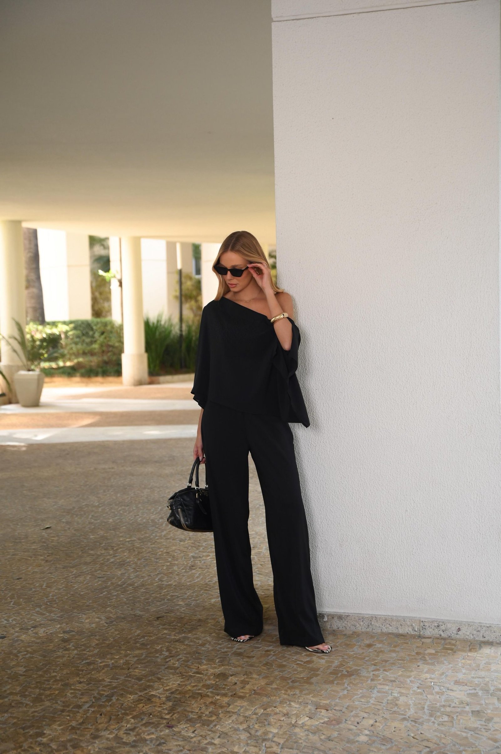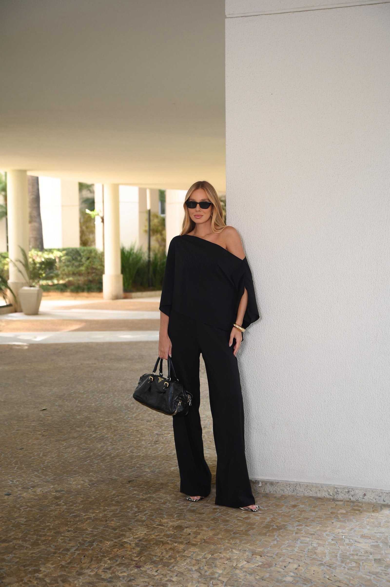 Blusa assimétrica: com decote ombro único, caimento fluido e barra soltinha, que traz leveza e movimento. A proposta valoriza o colo de forma sutil e sofisticada.