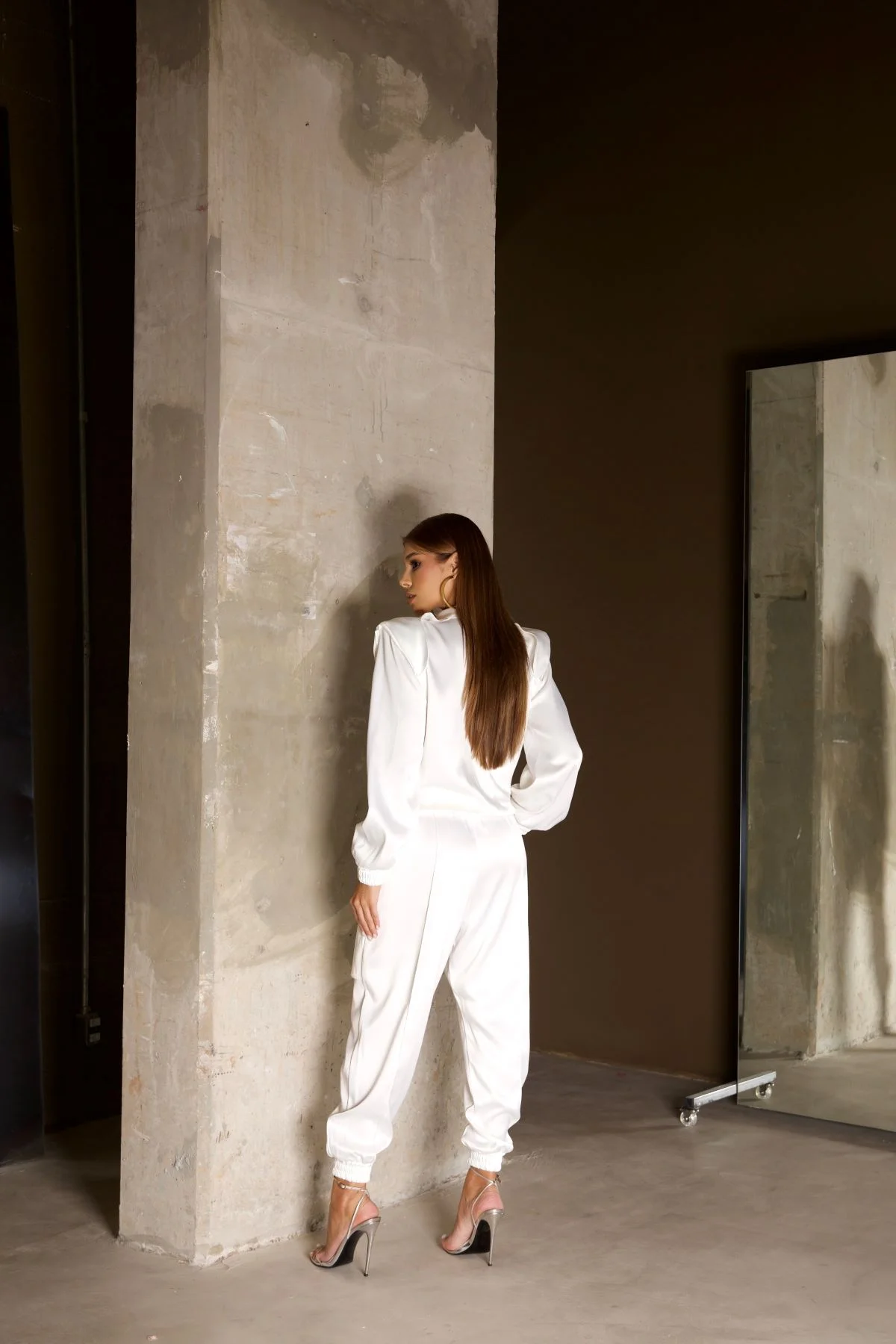 Conjunto em tecido com acabamento acetinado, inspirado no toque da Prada