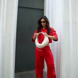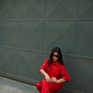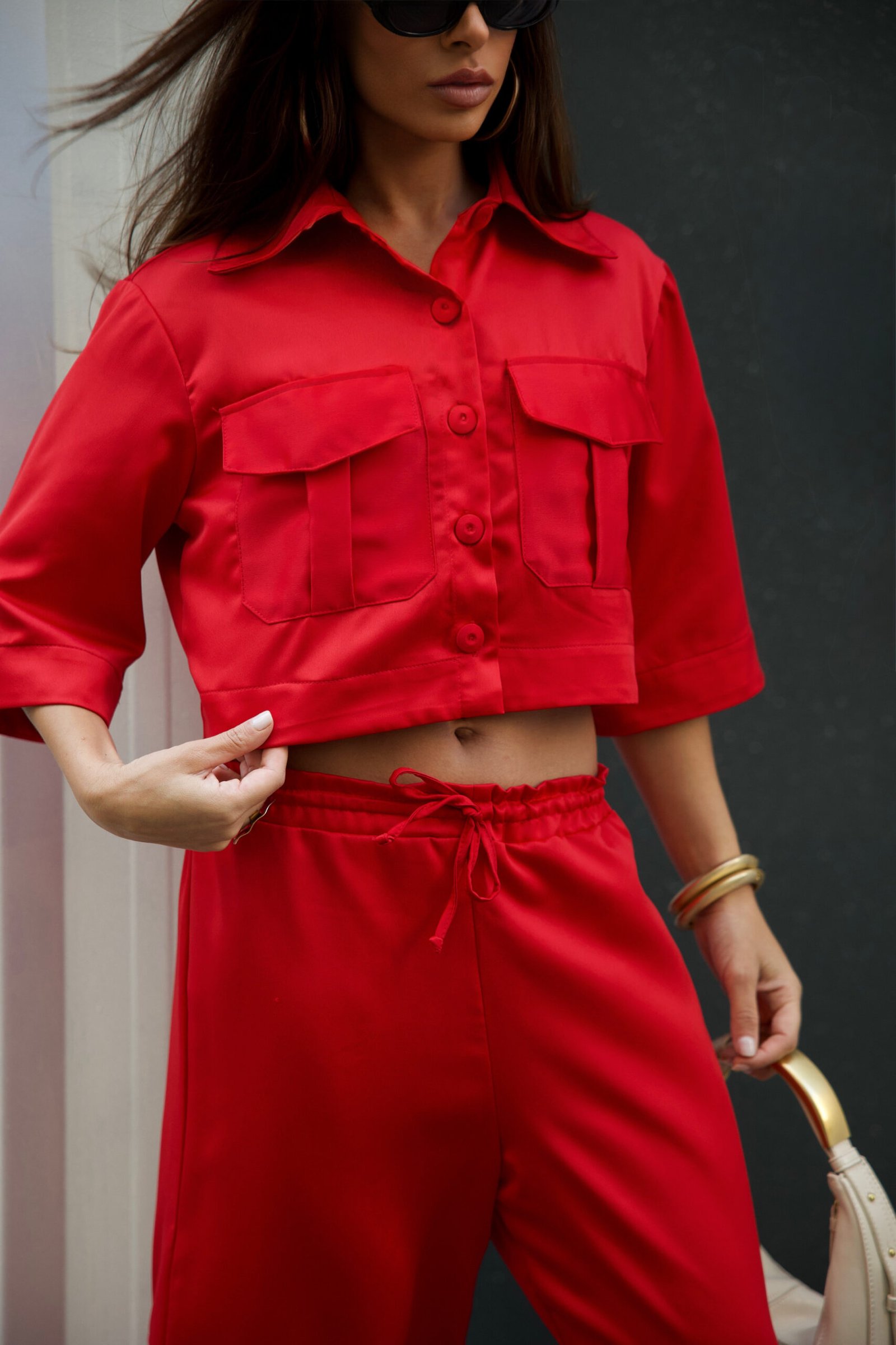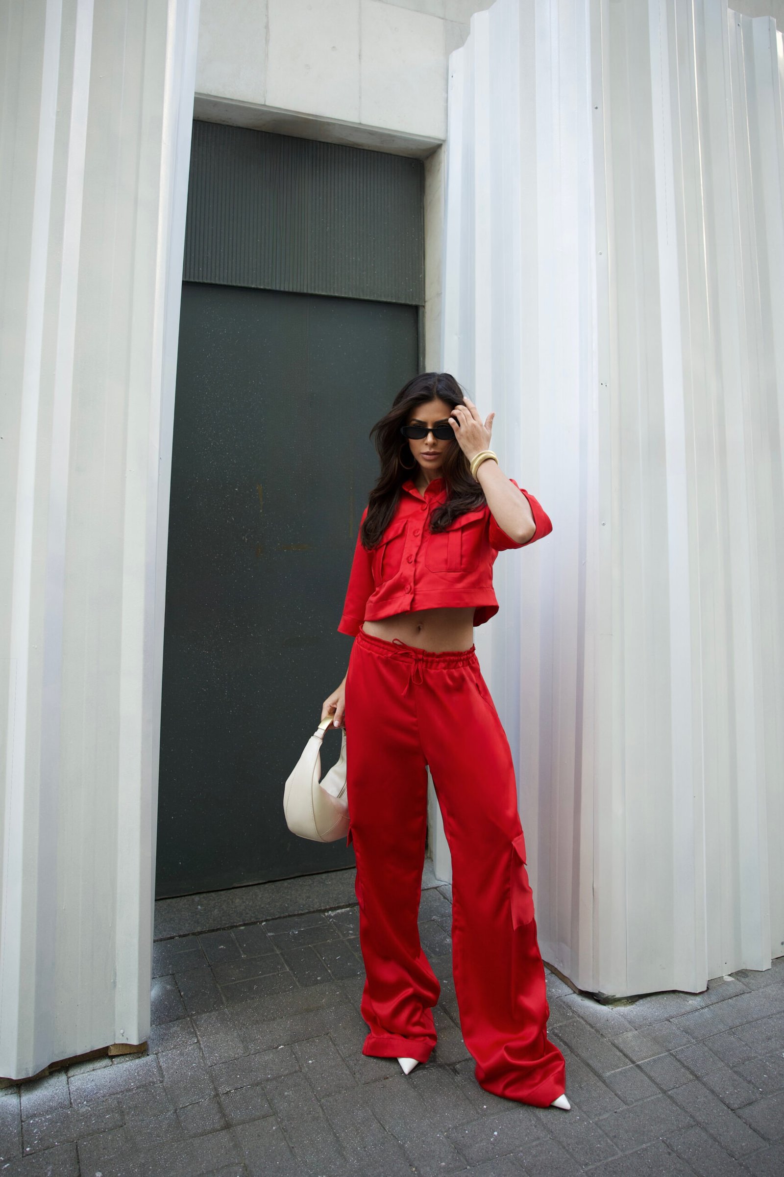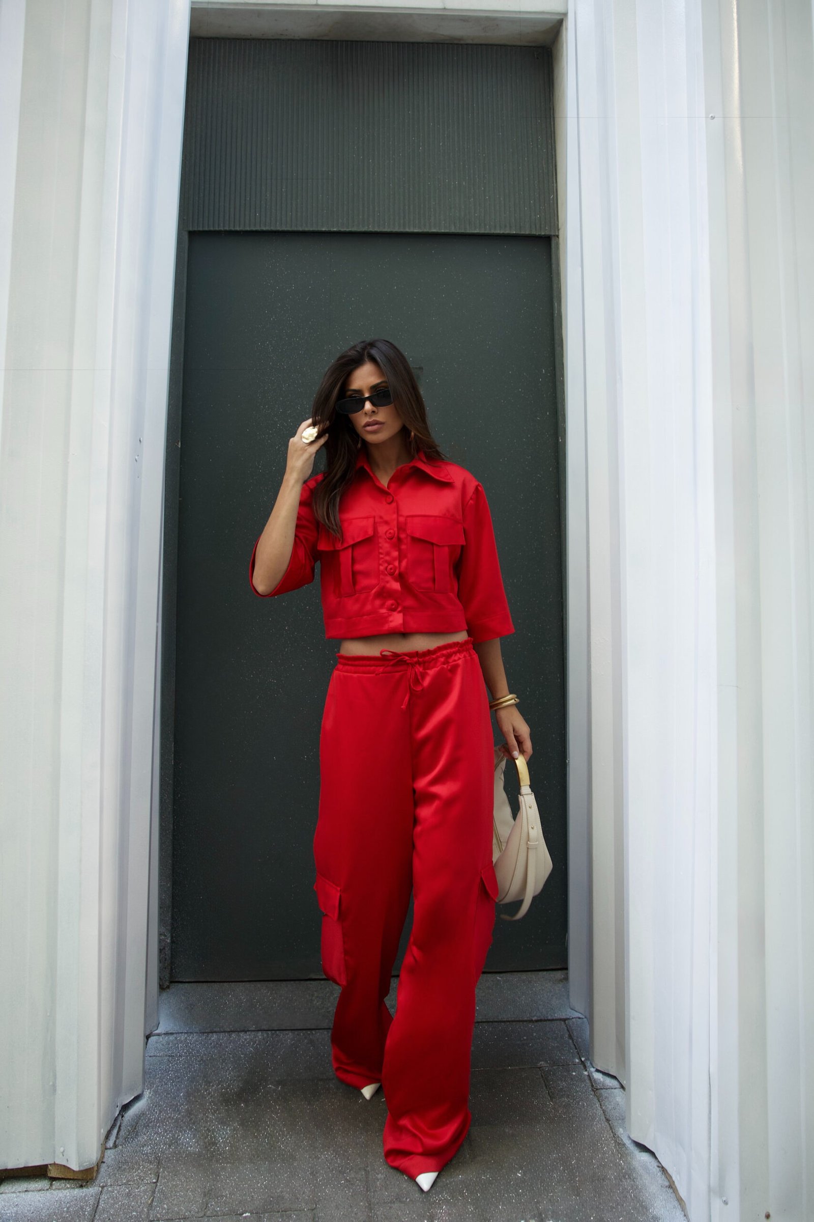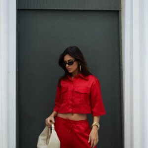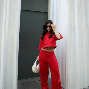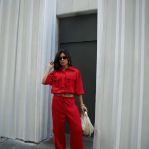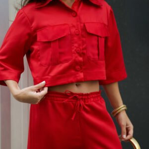Conjunto sofisticado e moderno, ideal para quem busca um visual fashion com toque urbano e elegante. Confeccionado em crepe acetinado, o modelo apresenta leve brilho e caimento fluido, garantindo conforto e presença marcante.