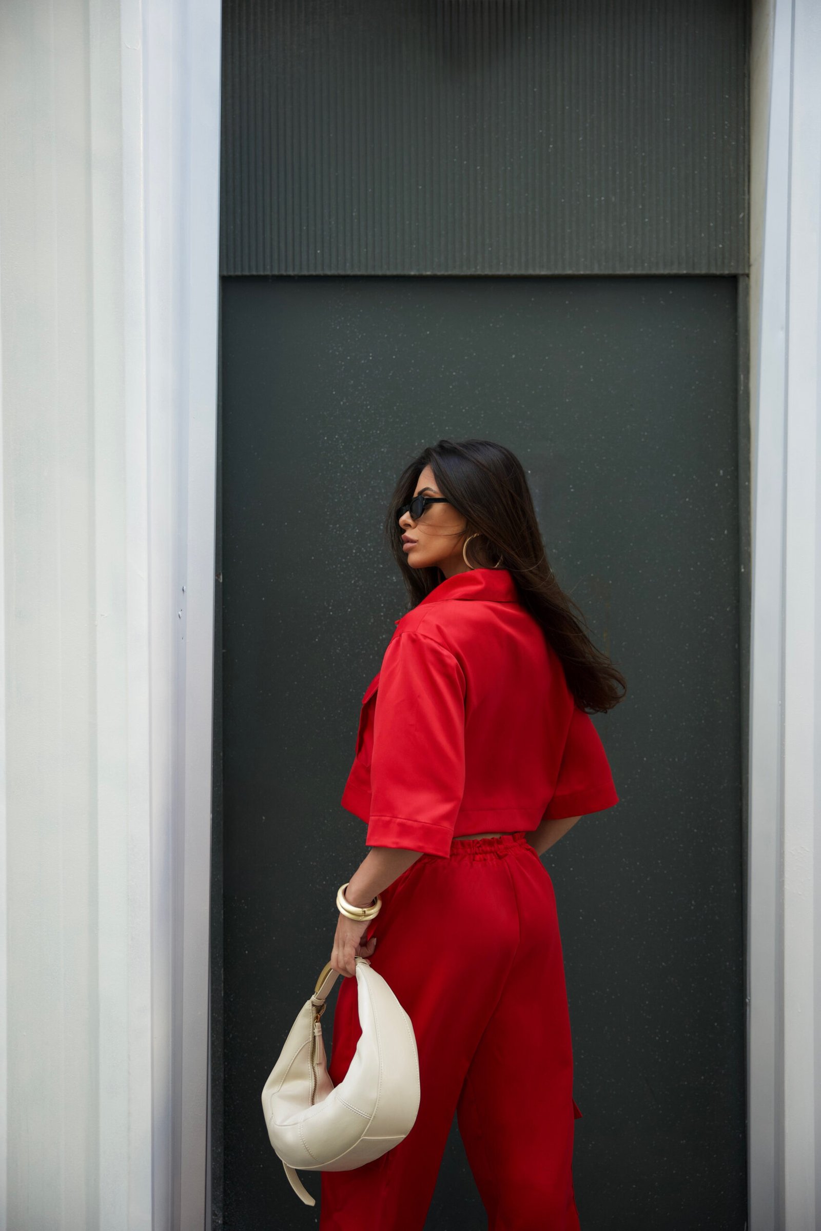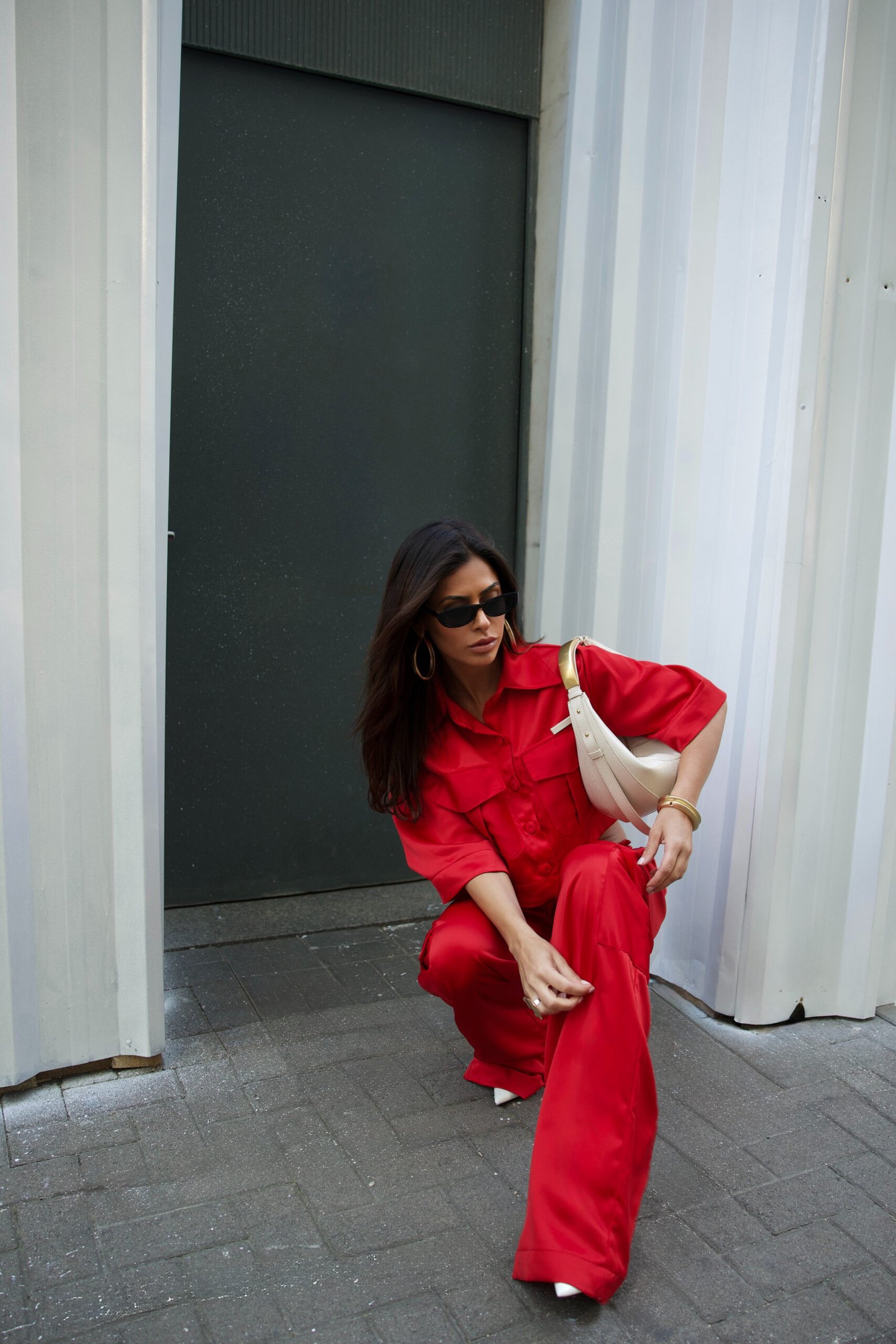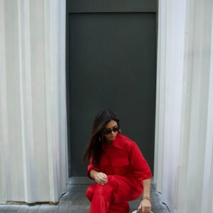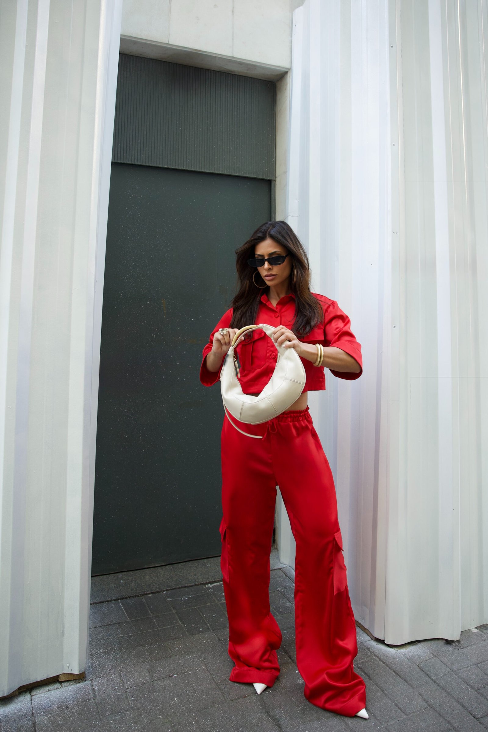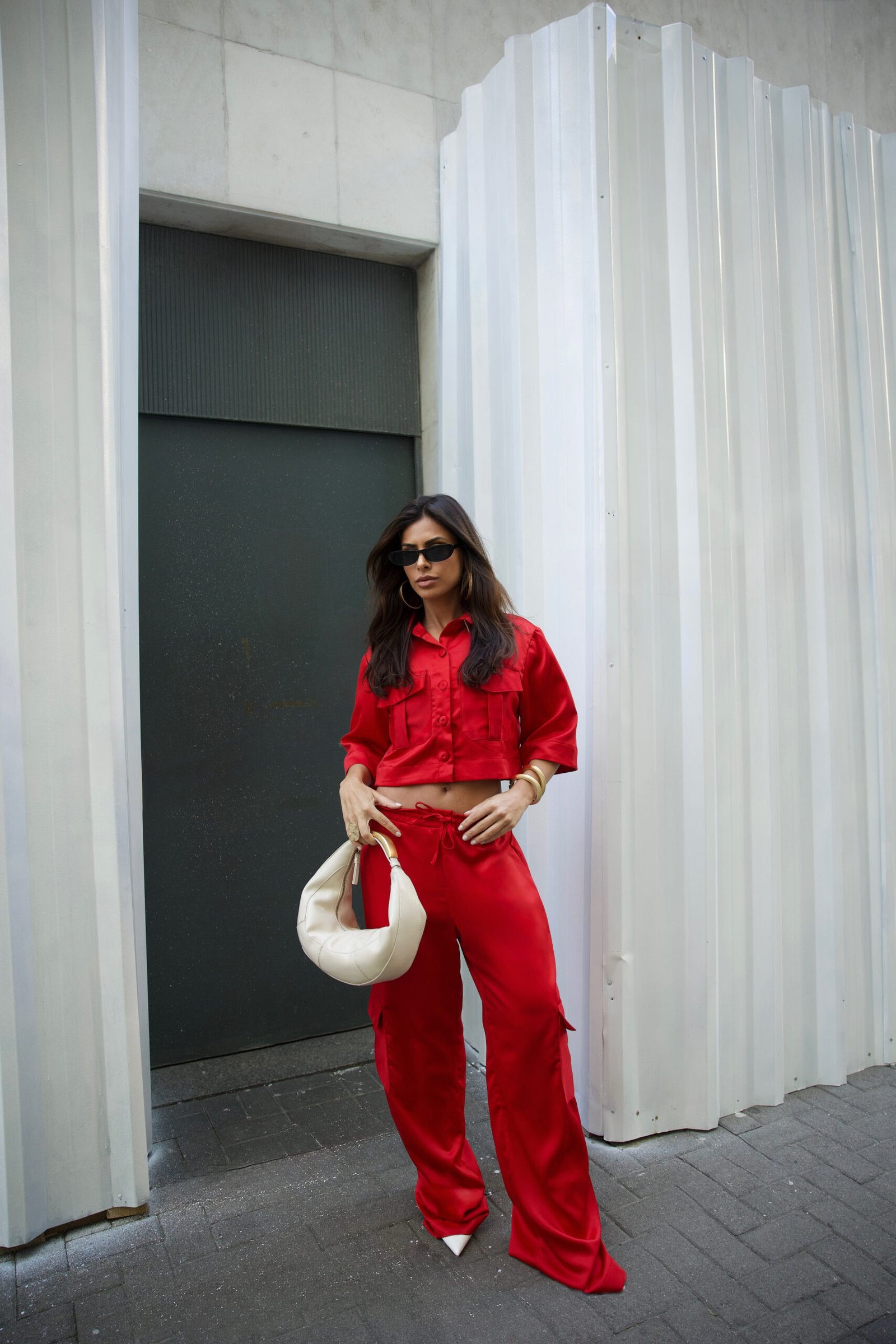 Conjunto sofisticado e moderno, ideal para quem busca um visual fashion com toque urbano e elegante. Confeccionado em crepe acetinado, o modelo apresenta leve brilho e caimento fluido, garantindo conforto e presença marcante.