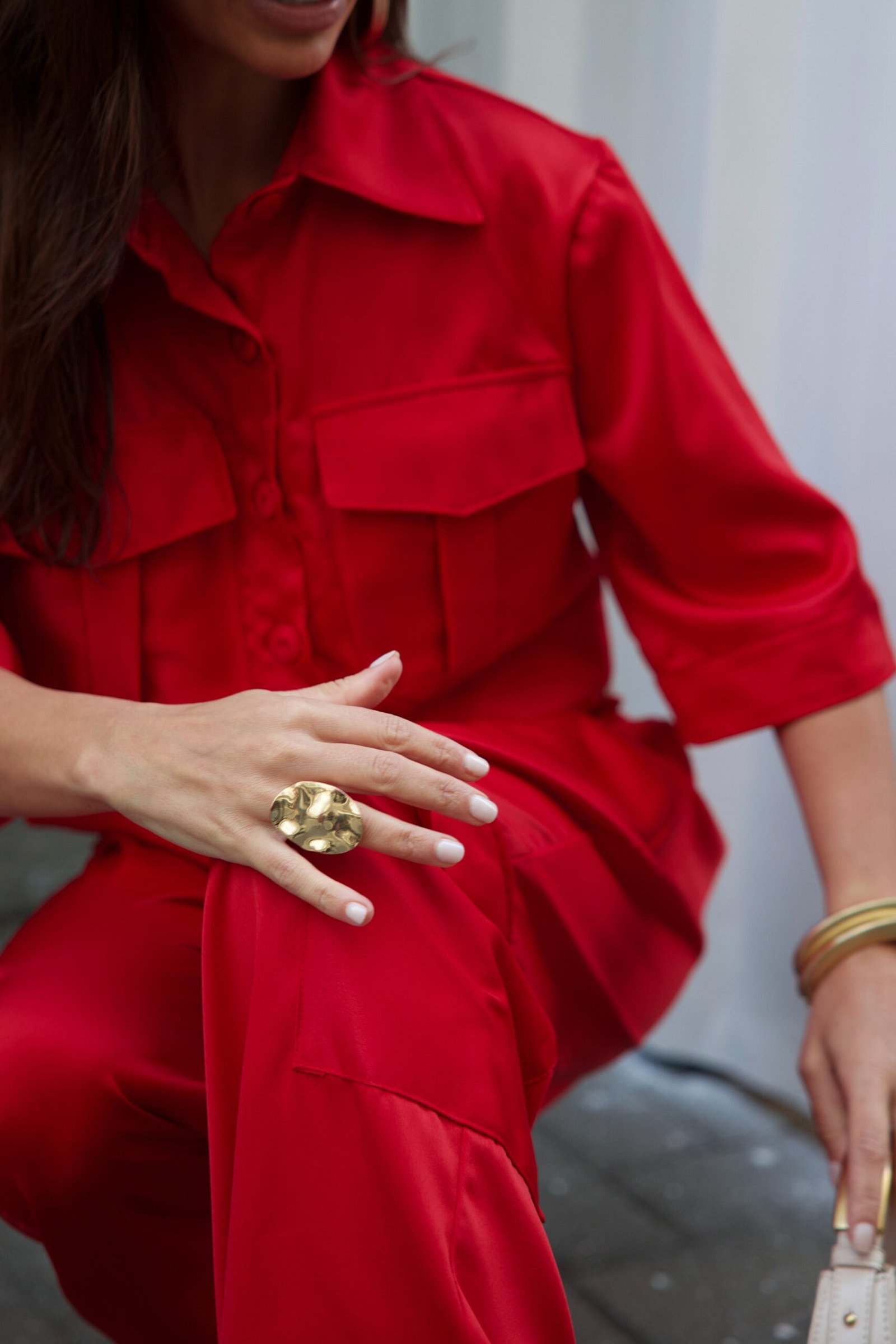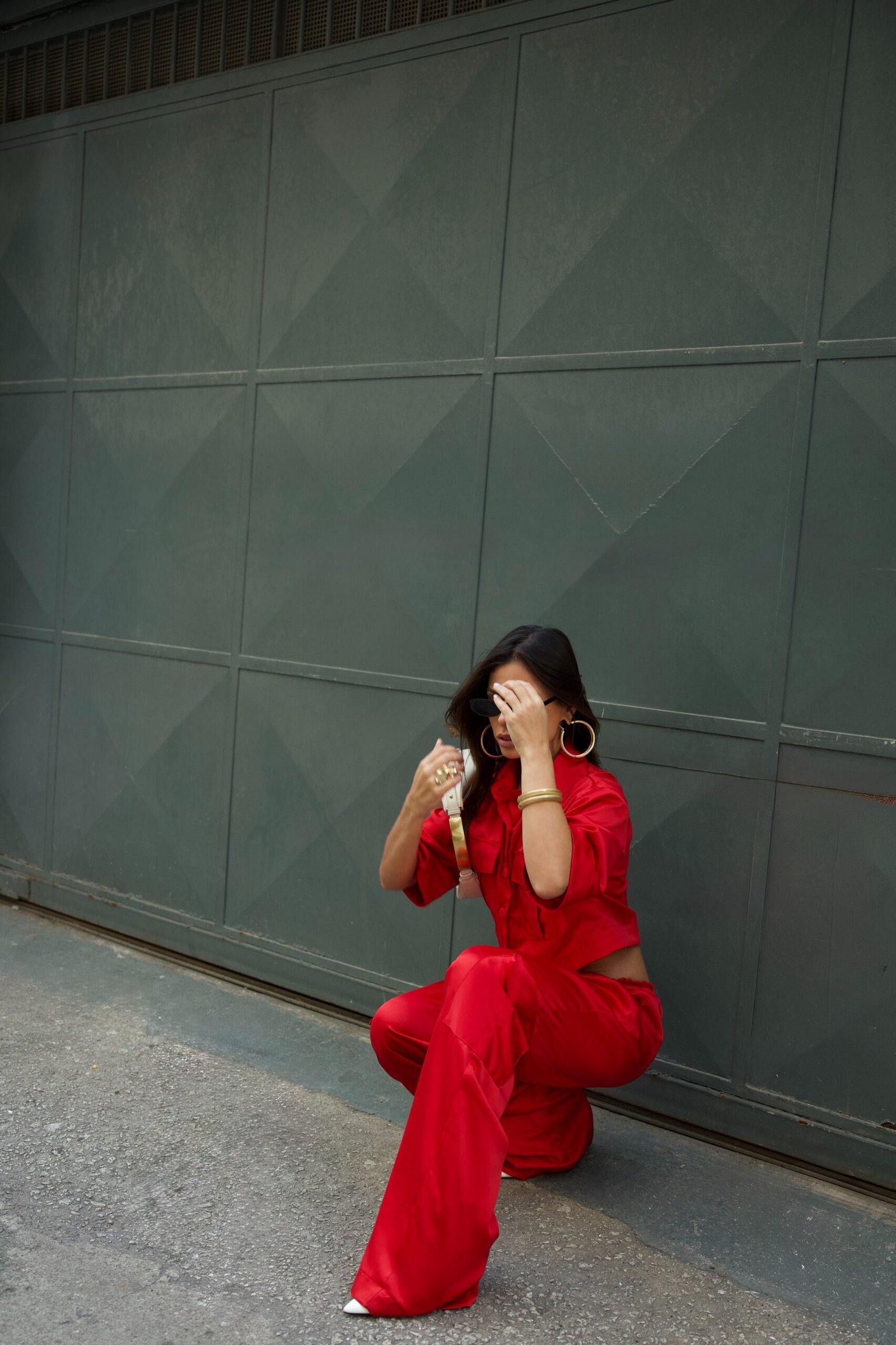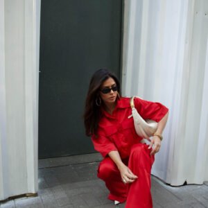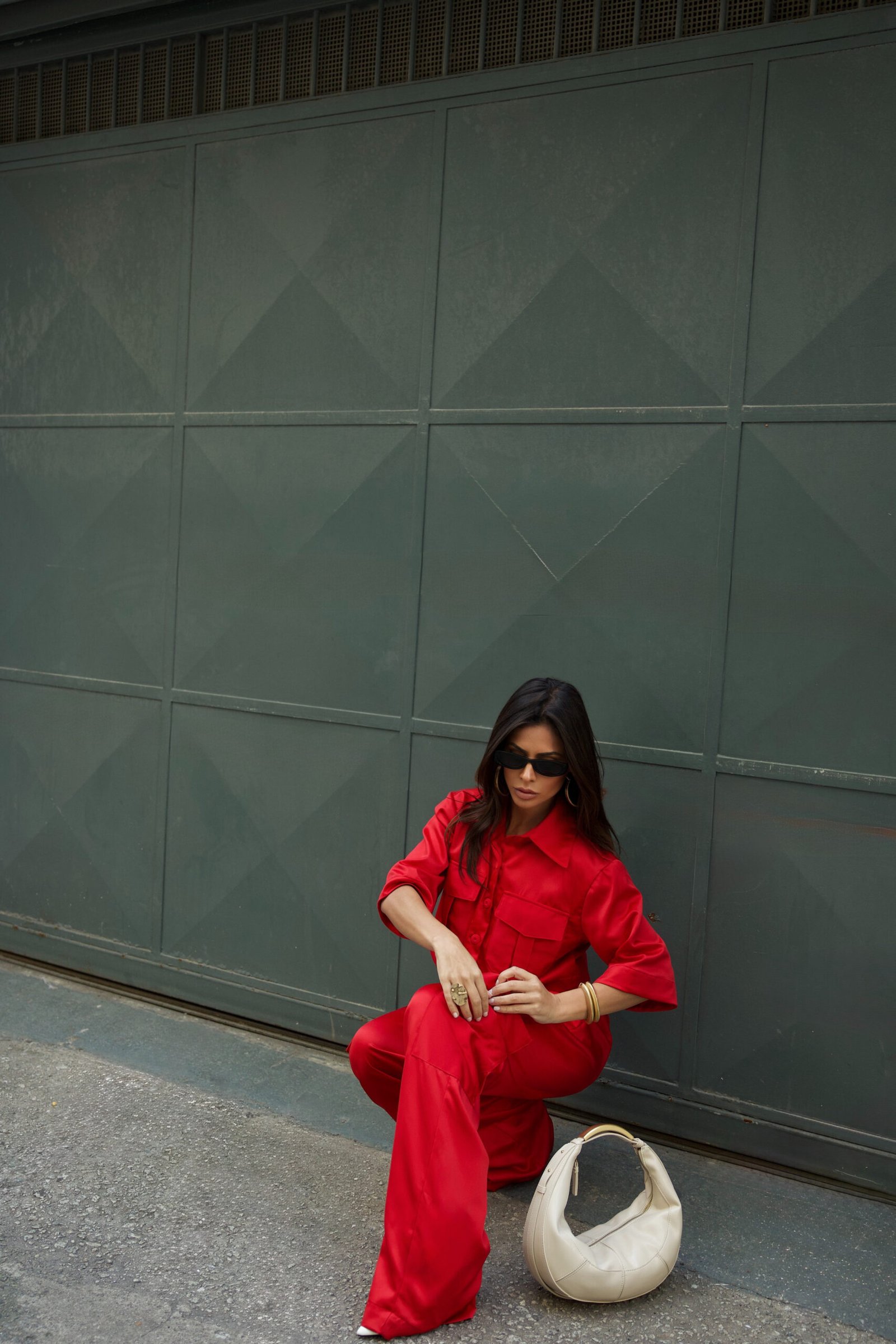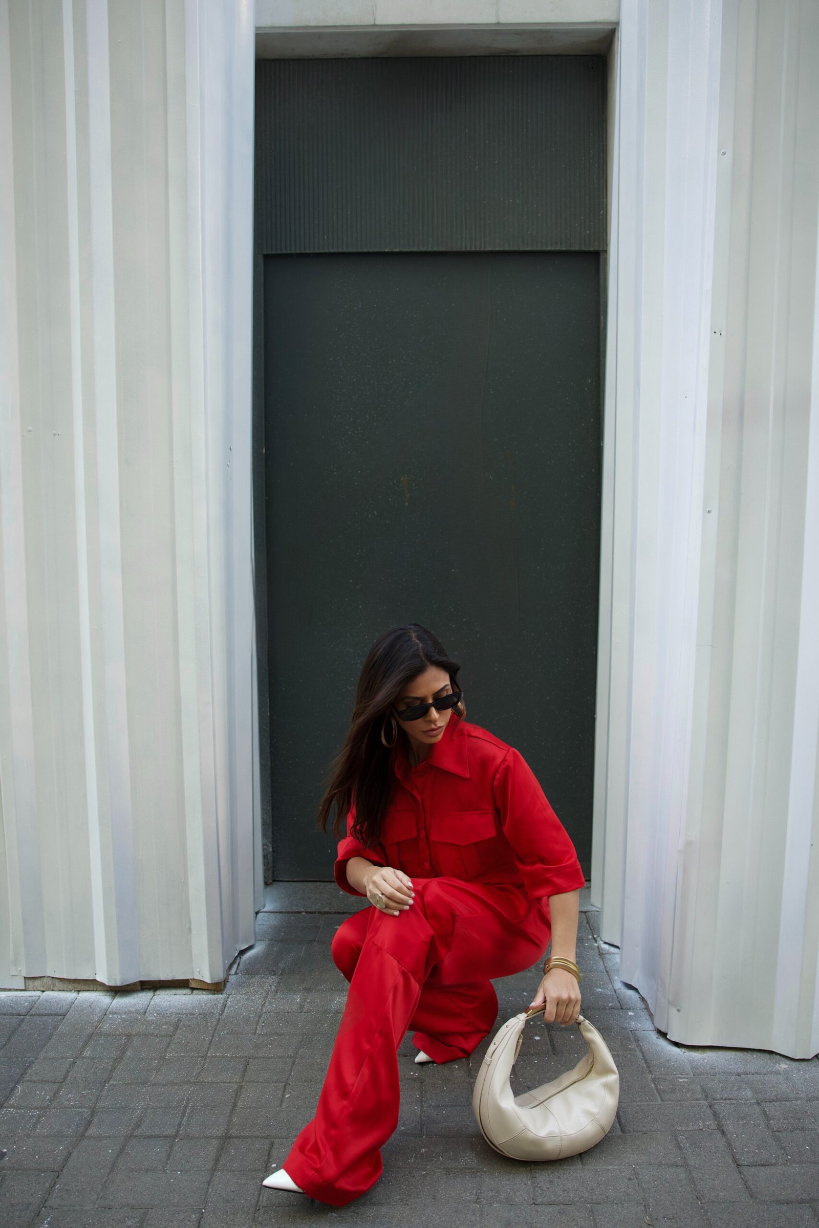 Conjunto sofisticado e moderno, ideal para quem busca um visual fashion com toque urbano e elegante. Confeccionado em crepe acetinado, o modelo apresenta leve brilho e caimento fluido, garantindo conforto e presença marcante.