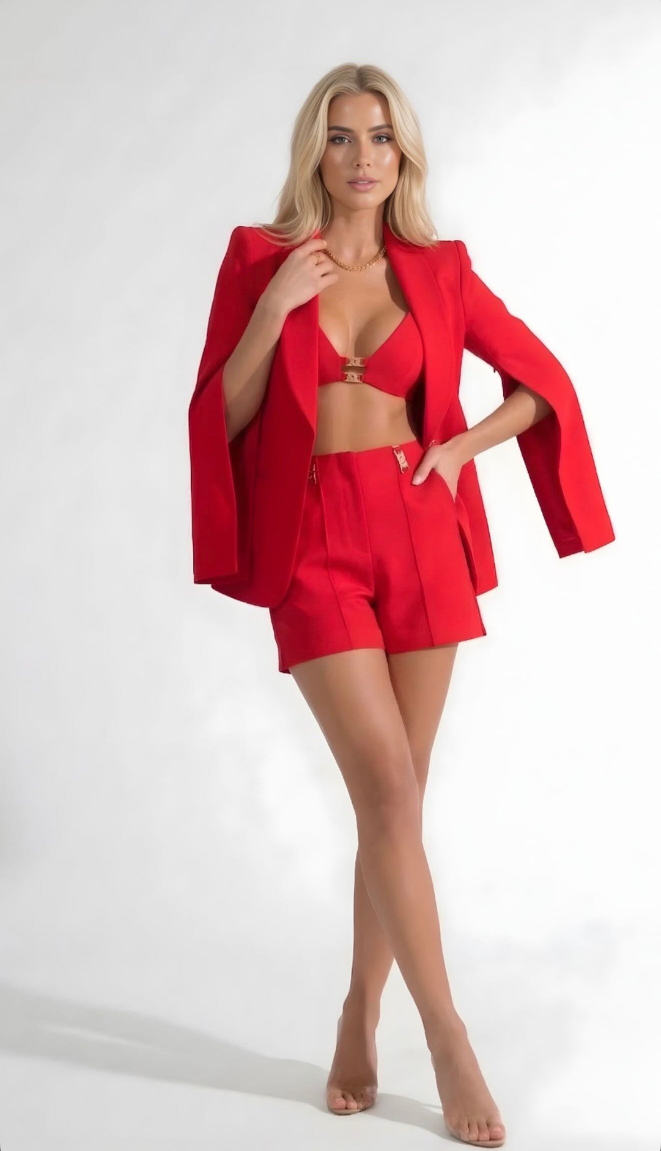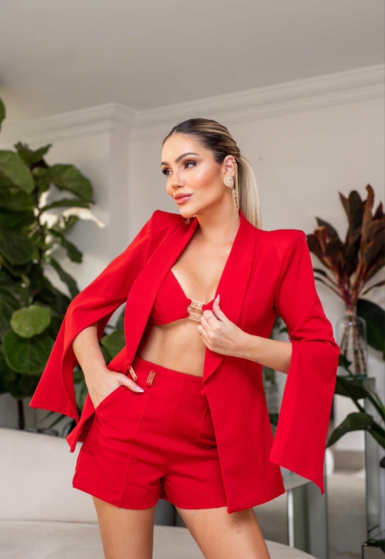 O conjunto Dira intenso traduz poder, feminilidade e sofisticação em uma proposta moderna e marcante. Com design contemporâneo e recortes estratégicos, a composição valoriza a silhueta de forma elegante, criando um visual impactante que equilibra sensualidade e alfaiataria. A combinação do blazer estruturado com top e mini saia cria um look fashionista e confiante, perfeito para quem deseja se destacar com estilo. Para um styling refinado, combine com sandálias de salto fino e acessórios dourados, valorizando ainda mais os detalhes metálicos da peça. Uma clutch minimalista e maquiagem iluminada completam a produção com glamour.