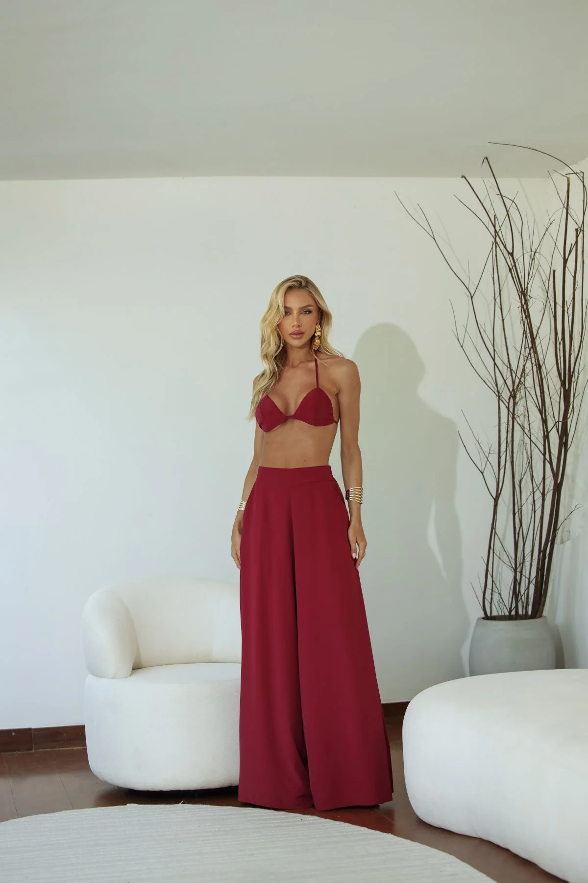 Conjunto composto por 3 peças: calça, quimono e top cortininha