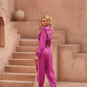 O Conjunto Noa é a combinação perfeita de estilo e conforto. Confeccionado em tecido acetinado com brilho suave, traz um ar sofisticado e moderno para diversas ocasiões. O design é realçado pelos detalhes geométricos em viés, que conferem um toque exclusivo e fashionista.