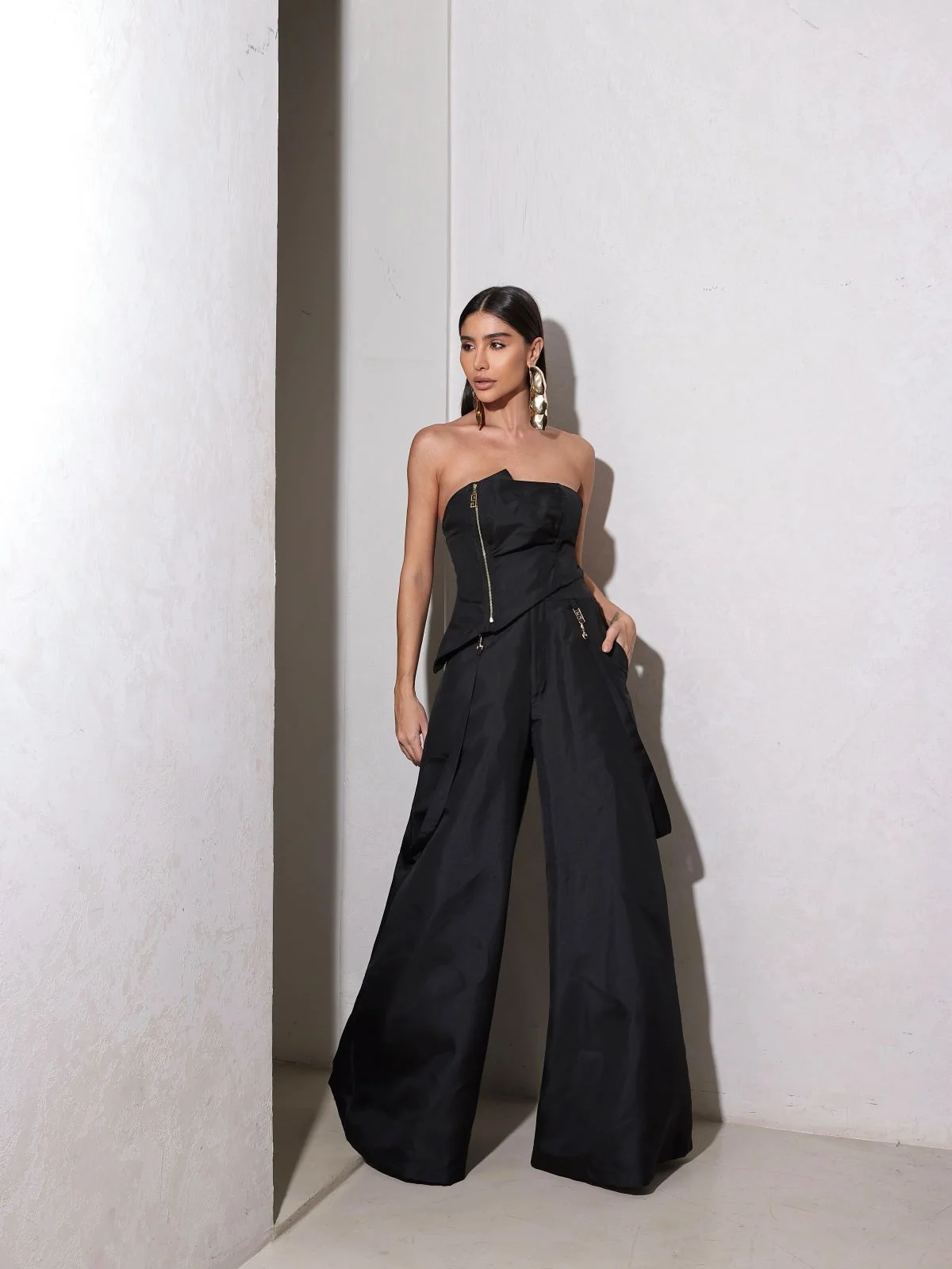 O Cropped Yanka é uma peça contemporânea que une minimalismo e impacto visual. Seu design tomara que caia com estrutura bem definida valoriza o colo e garante um toque sofisticado, enquanto os recortes assimétricos e drapeados sutis adicionam um ar de originalidade e elegância à composição.