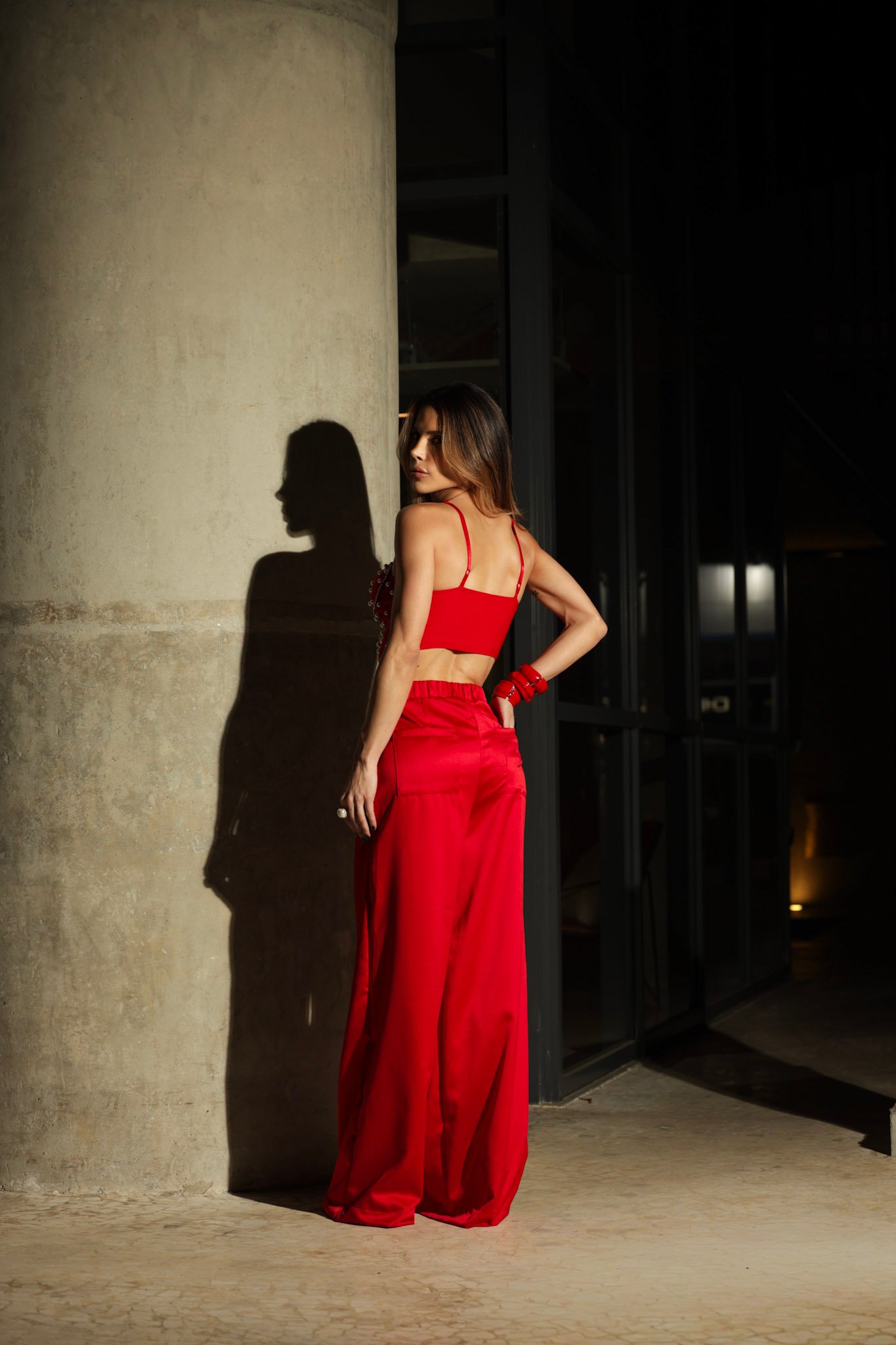 A textura acetinada potencializa a intensidade da cor, tornando a peça ideal para eventos noturnos, festas e ocasiões que pedem um look vibrante e sofisticado.