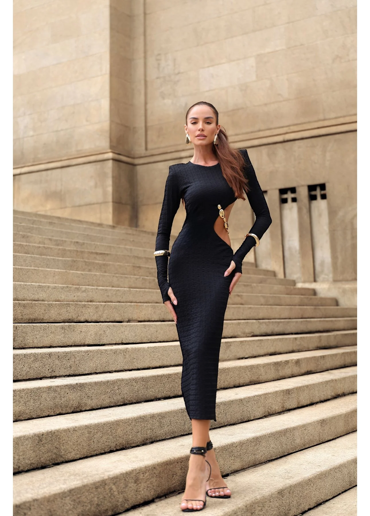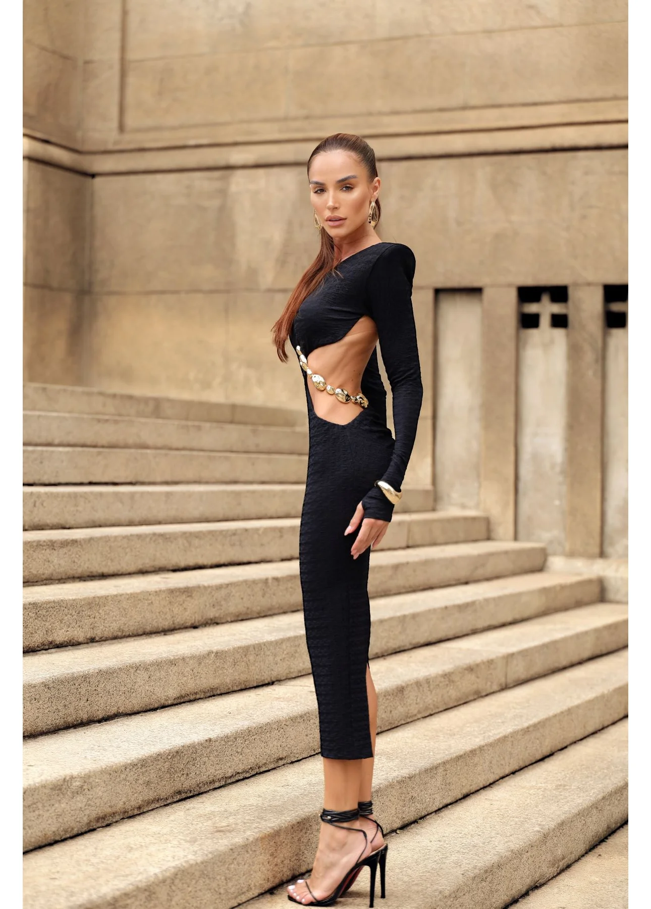 Vestido Kehlani é a definição sofisticada. Com design moderno e recorte estratégico na lateral, a peça valoriza a silhueta de forma elegante e marcante. O detalhe aplicado com pedrarias traz brilho na medida certa, elevando o visual e transformando o vestido em uma escolha perfeita para ocasiões especiais, festas noturnas e eventos que pedem presença e estilo.