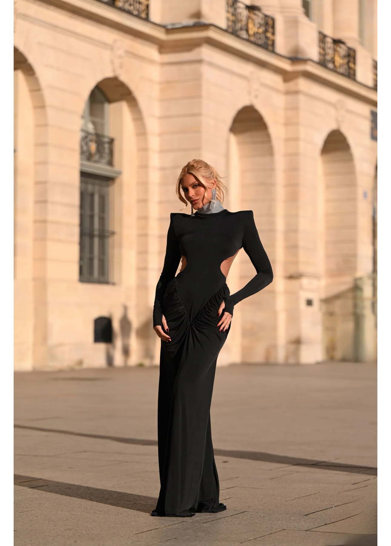 O Vestido longo Yume Strass é a tradução perfeita de sofisticação contemporânea. Com design imponente e linhas esculturais, a peça valoriza a silhueta com modelagem ajustada, ombros estruturados e drapeado estratégico que cria movimento e elegância. O brilho sutil do acabamento em strass na gola adiciona um ponto de luz refinado, transformando o visual em uma proposta marcante e atemporal para ocasiões especiais.