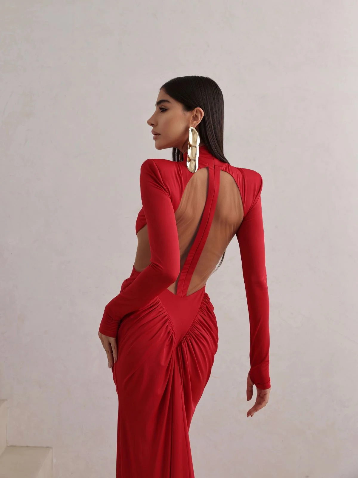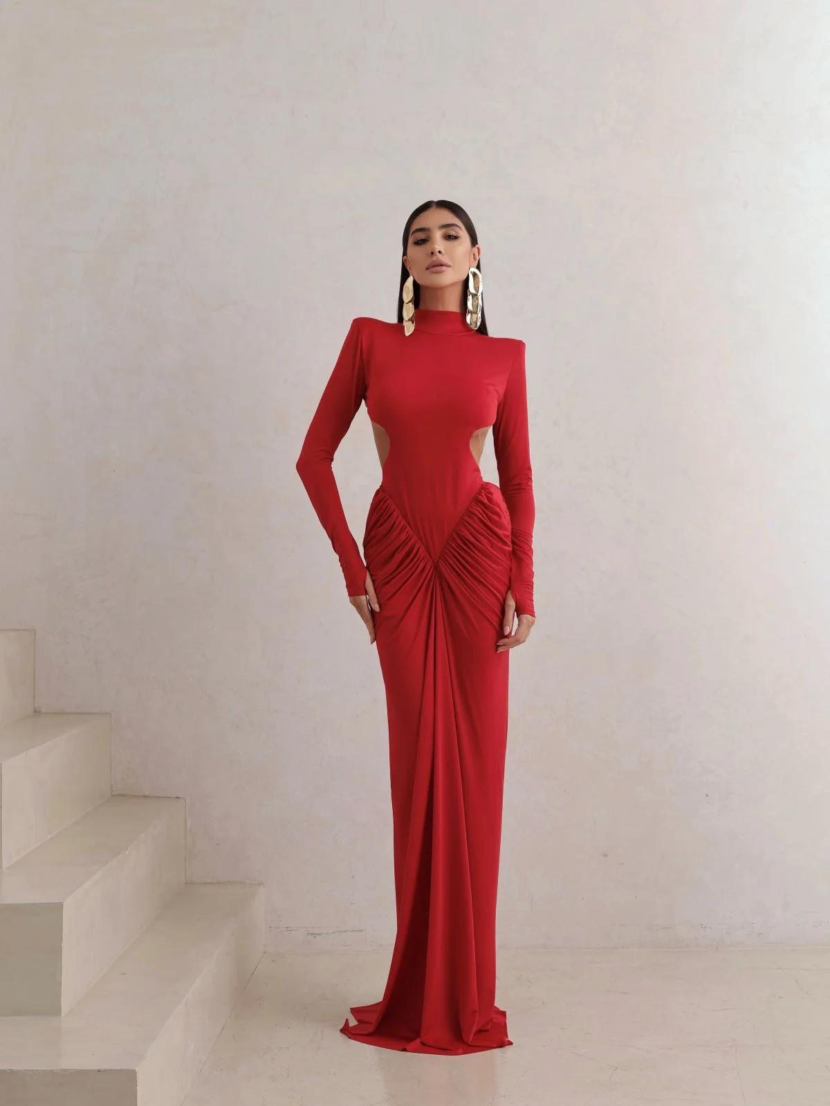 Vestido longo Yume é a definição de elegância sofisticada com um toque de ousadia. Confeccionado em jersey, ele combina conforto e caimento impecável, valorizando cada curva do corpo. Com modelagem justa, gola alta e mangas longas, é uma peça poderosa que equilibra sensualidade e sofisticação. As ombreiras estruturam a silhueta, adicionando imponência ao visual. Ideal para ocasiões noturnas ou eventos que pedem um look marcante.
