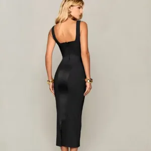 O Vestido Midi Savina traduz elegância e sensualidade com uma proposta sofisticada e contemporânea. Confeccionado em tecido encorpado com acabamento acetinado, ele valoriza a silhueta com sua modelagem ajustada e recortes estratégicos que criam um efeito visual moderno e marcante. Para uma produção elegante, combine com sandálias de salto fino e acessórios minimalistas. Já para um visual mais fashionista, aposte em brincos statement e clutch estruturada.