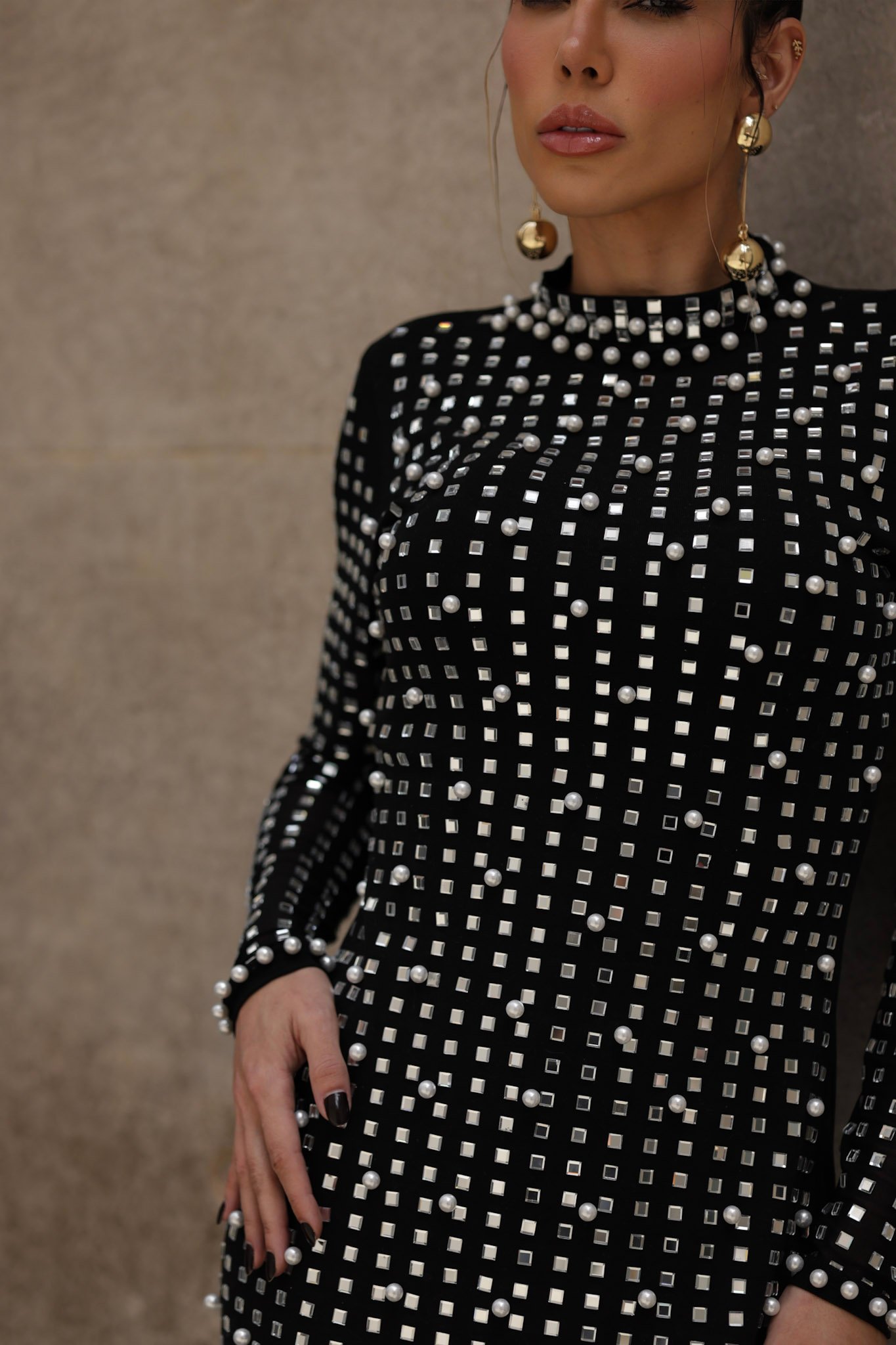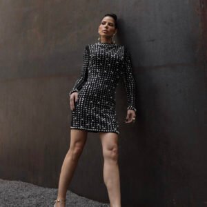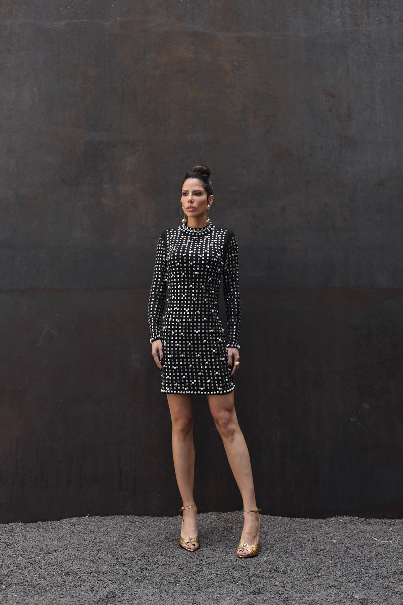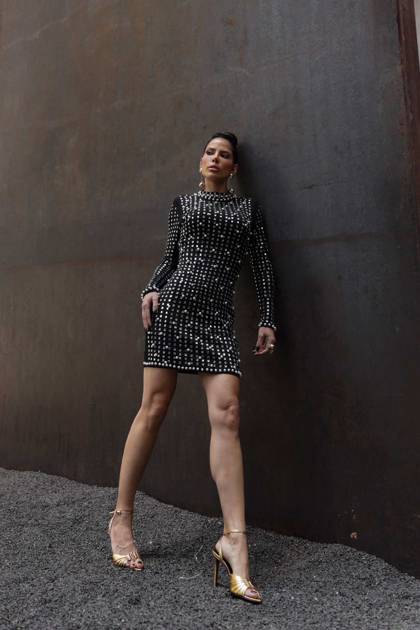 Encante em qualquer ocasião com o Vestido ML Strass Celebration, uma peça que une sofisticação, brilho e modernidade.