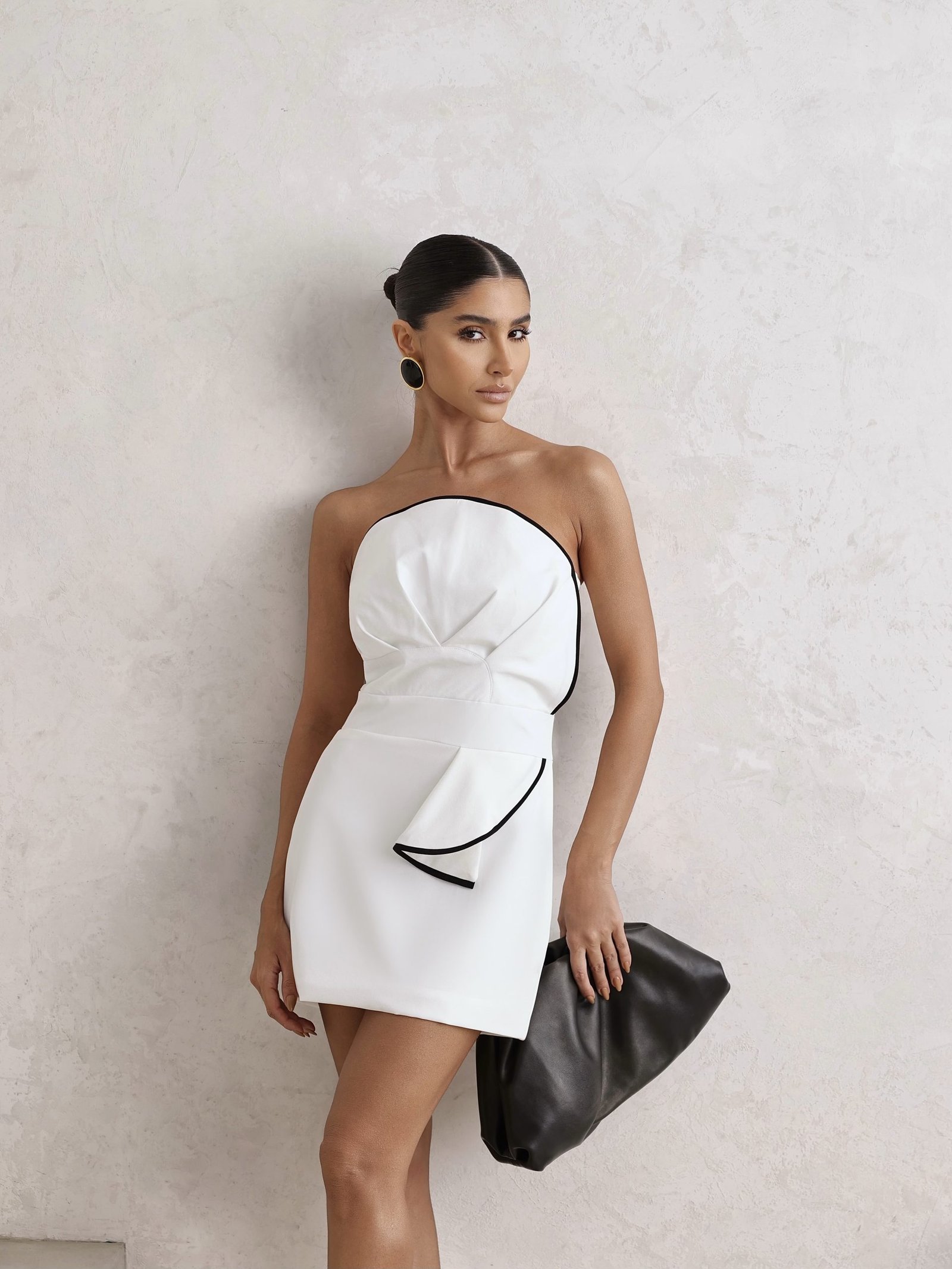 Com modelagem ajustada ao corpo, o vestido segue a linha tradicional do tubinho, realçando as curvas de maneira elegante. O detalhe especial fica por conta do acabamento em viés, que contorna a peça e adiciona modernidade ao design, trazendo um toque de contraste sutil e delicado.